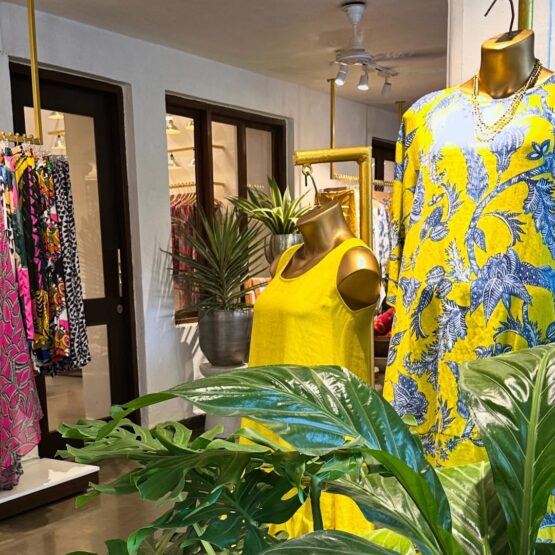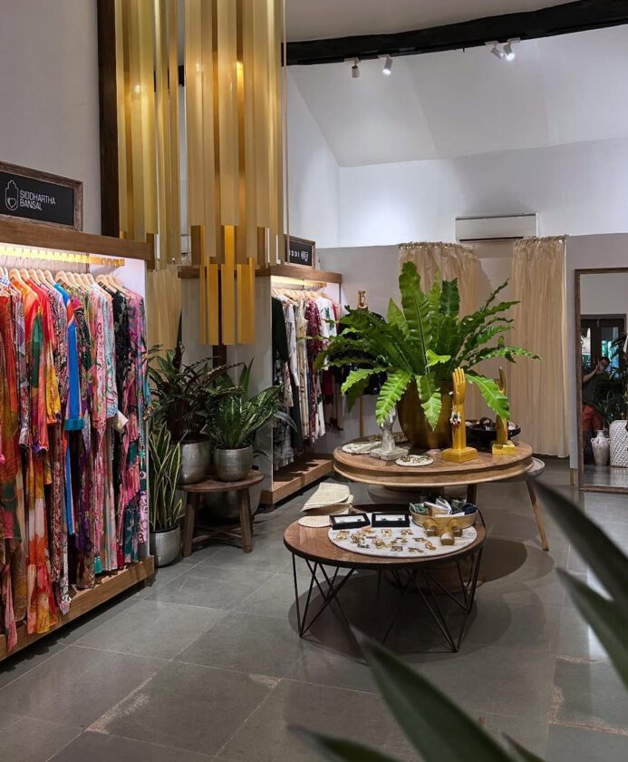 In Goa’s Assagao, lined with boutiques that boast design, art, clothing and jewellery, resides La Boa Goa, a multi-designer space for fashion, lifestyle and accessories. An extension of the already well-known store Rangeela, housed in its previous location, La Boa carries forward the same philosophy with a distinct personality. Set within a restored Portuguese-style villa that follows the architectural language for which Goan residences are famed, the space feels less like a store and more like a curated home. Potted plants and lush greenery lead visitors up a flight of stairs to a façade washed in hints of pink, evoking an almost carnival-inspired mood that feels vibrant and inviting, with verandah-like thresholds and terracotta accents. Inside, the space opens up to a thoughtfully edited mix of some of the country’s most exciting names, including Paloma, The Jodi Life, Guapa, Shop Verb, Artchives and more. What becomes evident on lingering is the material honesty that anchors the space. Handcrafted stone and wood tables, woven baskets, ceramics, brass, cane and textiles are arranged in a way that echoes Indian craft traditions without slipping into a predictable display language. Instead of rigid shelving,