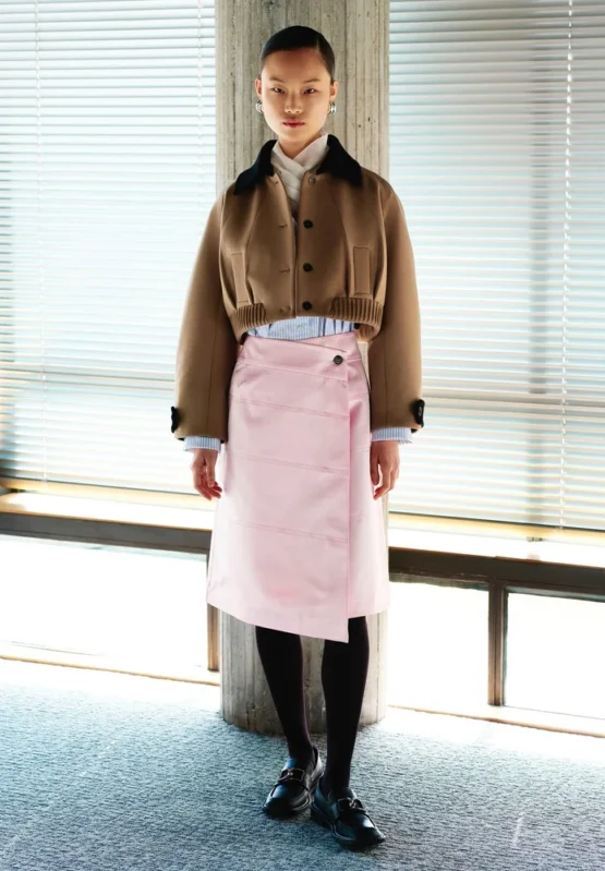 A closer look, however, reveals the complexities of the craft in each of Miuniku’s designs. Familiar suiting fabrics, typically reserved for structured garments, take on unexpected fluidity in skirts. Take, for instance, their collection ‘The Routine' juxtaposes pinstripes with pyjama stripes, symbolising the dialogue between work and rest, effort and ease. Meanwhile, the interplay of pleats, panels, and yokes creates a visual rhythm that might seem complex in concept yet feels remarkably cohesive in execution. Despite the many elements at play, each ensemble retains a polished and clean finish.