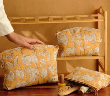 The catalogue moves across both home and lifestyle categories. Table runners, napkins, and cloth accessories sit alongside laptop sleeves, pouches, travel organisers, and lightweight bags, with a small pet collection as well. Across all of these, the design approach stays consistent. Shapes are straightforward, prints hold attention without overpowering, and materials are chosen for durability.